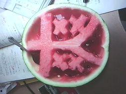更有趣的是,活动现场还出现了一位“瓜王”。这位同学不仅切瓜技术高超,还现场表演了“西瓜皮画”。他的作品赢得了大家的一致好评,成为了当之无愧的“瓜王”。